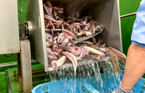 魚を洗ったあと魚肉採取機によって身と皮・骨を分けていき、その後、魚の身をさらしていきます。魚の身をさらすことによって、より一層魚の身が白くなります。しかし、さらし過ぎると魚の風味がなくなるため、細心の注意を払います。